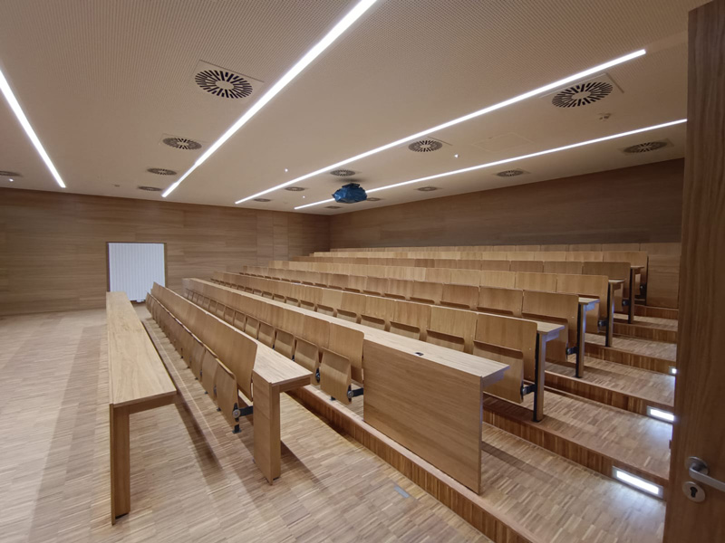 Die Hörsaalbestuhlung für Universitäten und (Hoch)schulen wird nach Ihrem Bedarf aus hochwertigen Werkstoffen und Materialien in unserem Unternehmen gefertigt.